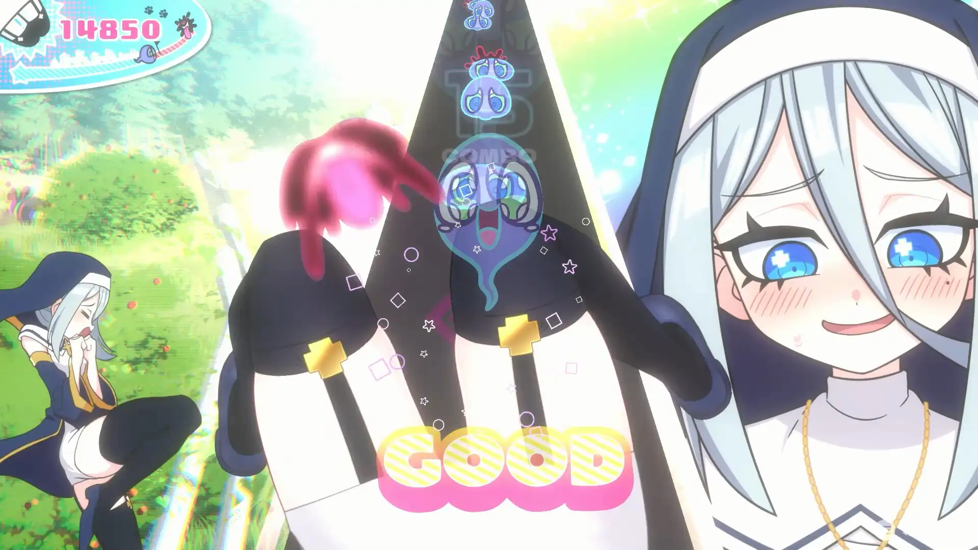 游戏操作极为简洁,仅需通过 “夹击” 和 “飞踢” 两种动作应对三种目标。面对飞来的 “灵魂” 要精准夹击完成净化,遇到 “病毒” 则需飞踢击退,而偶尔出现的猫咪需保持不动借膝盖供其休息。游戏曲目分 EASY、NORMAL、HARD 三档难度,高难度下目标密度和节奏都会提升,既适合音游新手入门,也能满足核心玩家的挑战需求。同时玩家跟着动感电音节拍操作时,成功连击还会触发角色互动台词,打击感和沉浸感拉满。
