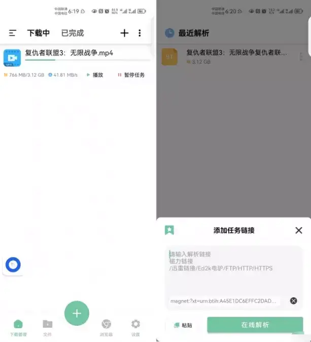 - 全格式全协议适配:该软件兼容性较强,能支持 FTP、磁力链接、BT 种子、HTTPS 等多种主流下载协议和格式,可应对影视、音乐、文档等不同类型的资源下载需求。它对冷门种子资源也有较好的适配性,解析速度快,还能快速识别种子中的视频、音频、压缩包等各类文件,方便用户选择性下载。同时遇到死链时会自动切换备用源,提升下载成功率。