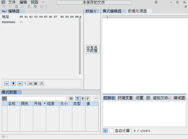3. 模式语言解析(核心功能):切换到右侧 “Pattern Editor” 面板,输入类 C++ 语法描述数据结构,例如解析文件头的代码: