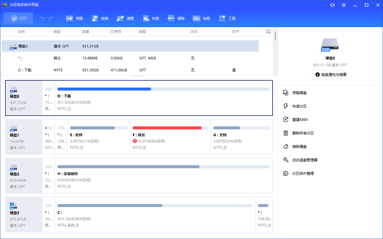 - 无损操作:核心功能均支持数据无损,避免分区调整 / 转换导致的数据丢失。
