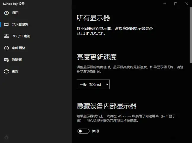 - 局限:依赖显示器 DDC/CI 支持,老旧或部分廉价显示器可能不兼容;少数显示器需手动开启 DDC/CI;笔记本内屏通常通过系统 API 调节,非 DDC/CITwinkle Tray。