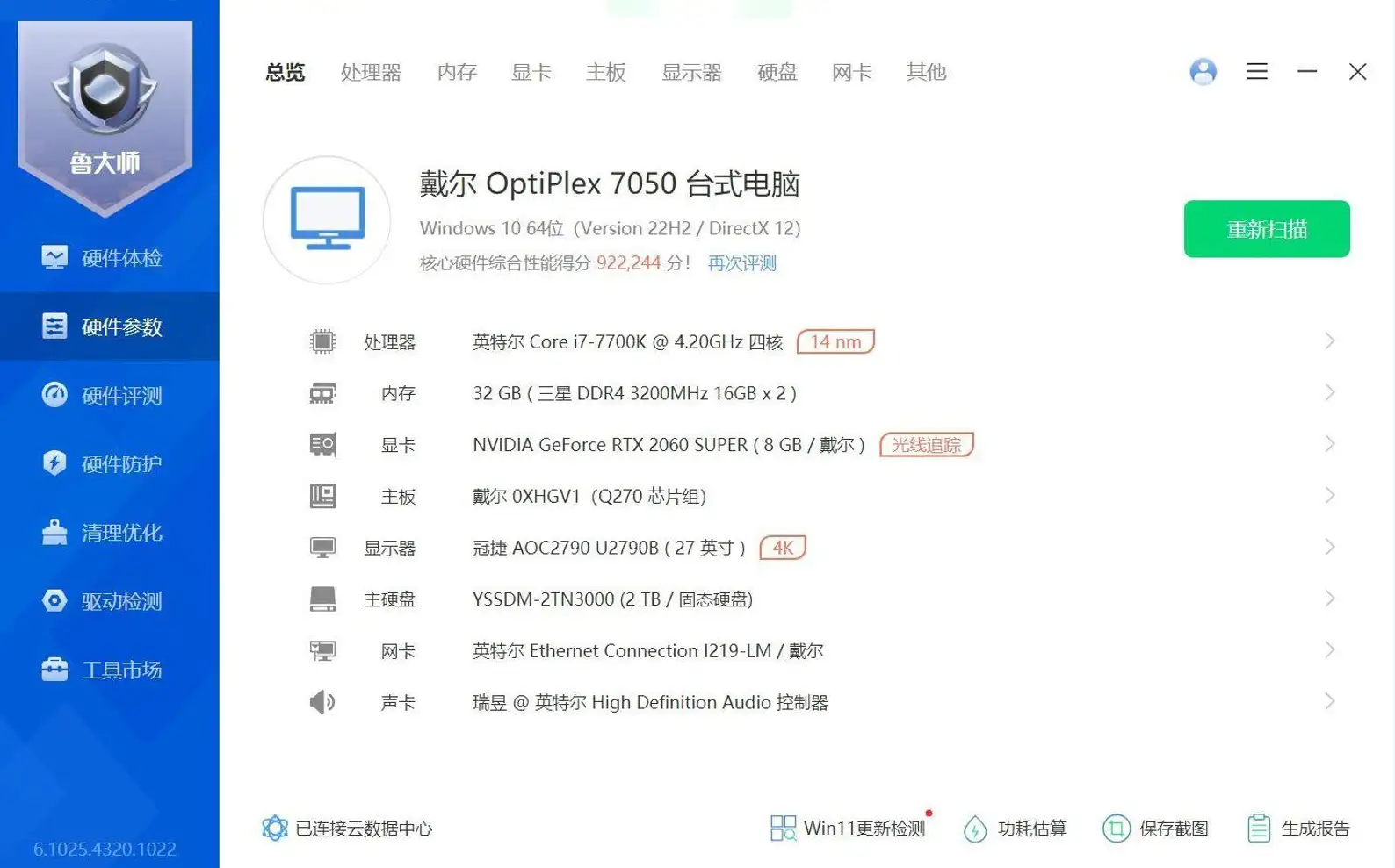 - 进入 “硬件参数” 查看详细配置,核对 CPU 型号、显卡显存、硬盘容量等,辨别硬件真伪。