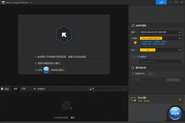 1. 导入素材:打开软件后,拖拽图片或点击 “导入” 选择素材,支持 JPG、PNG、TIFF、RAW 等主流格式Aiarty Image Enhancer。