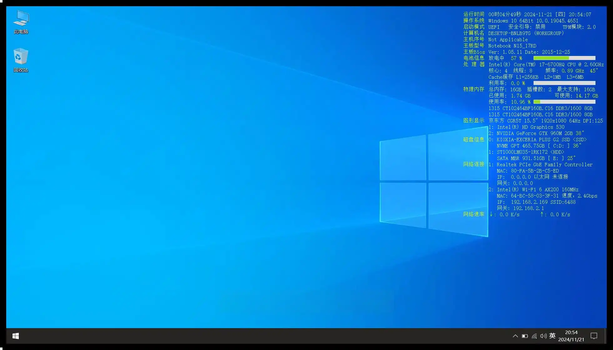 - 实时桌面显示:核心数据(CPU 占用 / 温度、内存使用、硬盘读写 / 健康、网络速率、显卡温度等)悬浮桌面,无需打开窗口,动态刷新,颜色提示负载状态。