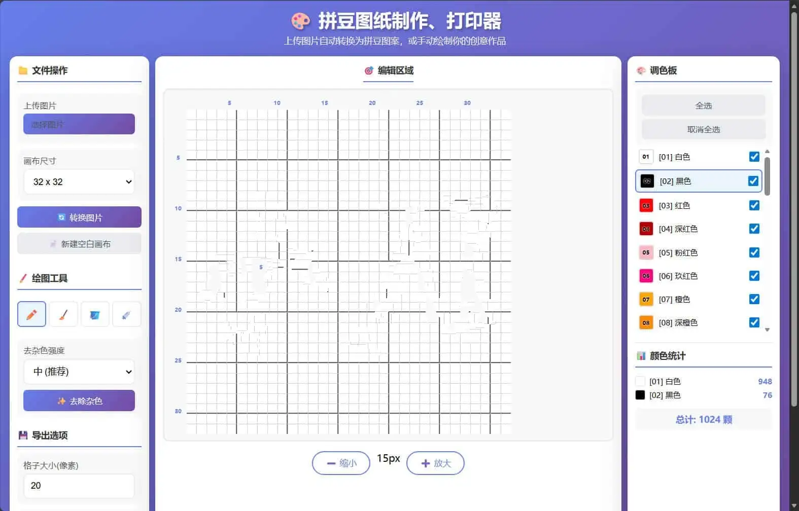 上传任意图片自动转换为拼豆图案