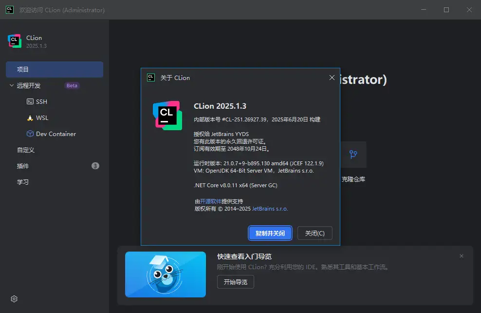 - 性能:大项目建议 16GB+ 内存,开启 CLion Nova 引擎(2025.3+ 默认)提升响应速度