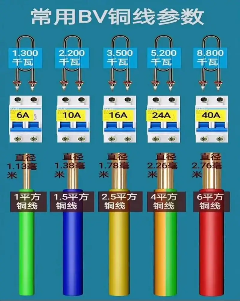 - 导线与开关、插座等配件需匹配(如 4mm² 导线配≥32A 空开),避免 “小开关配粗线” 或 “大开关配细线”。