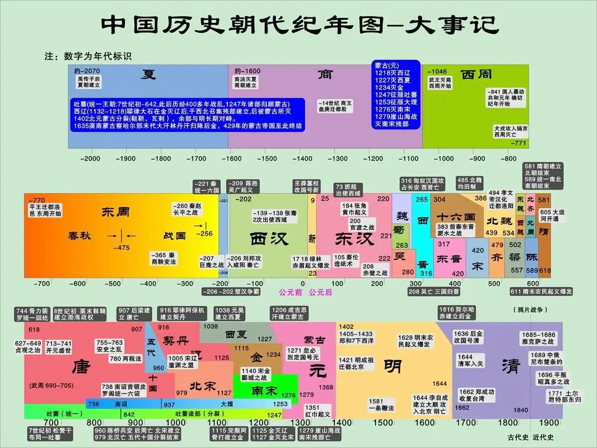 中国历代王朝简表/中国历史朝代歌/中国历史朝代全览表:从夏朝到清朝的更迭脉络